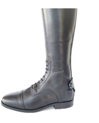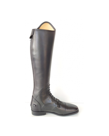 Esta línea de calzado para la equitación está elaborada en piel de ternera con forro en piel, elástico trasero para mayor comodidad y precisión en la adaptación de la bota a la pierna del jinete, cordones elásticos frontales, cremallera reforzada, soporte de espuela y puntera con ángulos suaves. Gracias a la suma de cada uno de estos elementos se obtiene como resultado una bota confortable, estilizada, duradera y elegante.